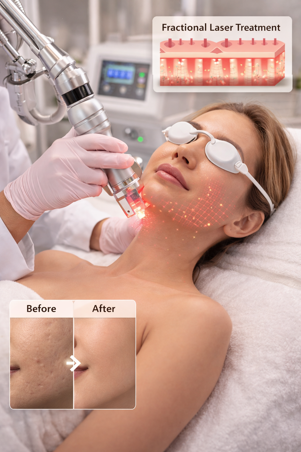 Over time, this skin resurfacing laser treatment supports gradual skin renewal and long-term collagen stimulation.